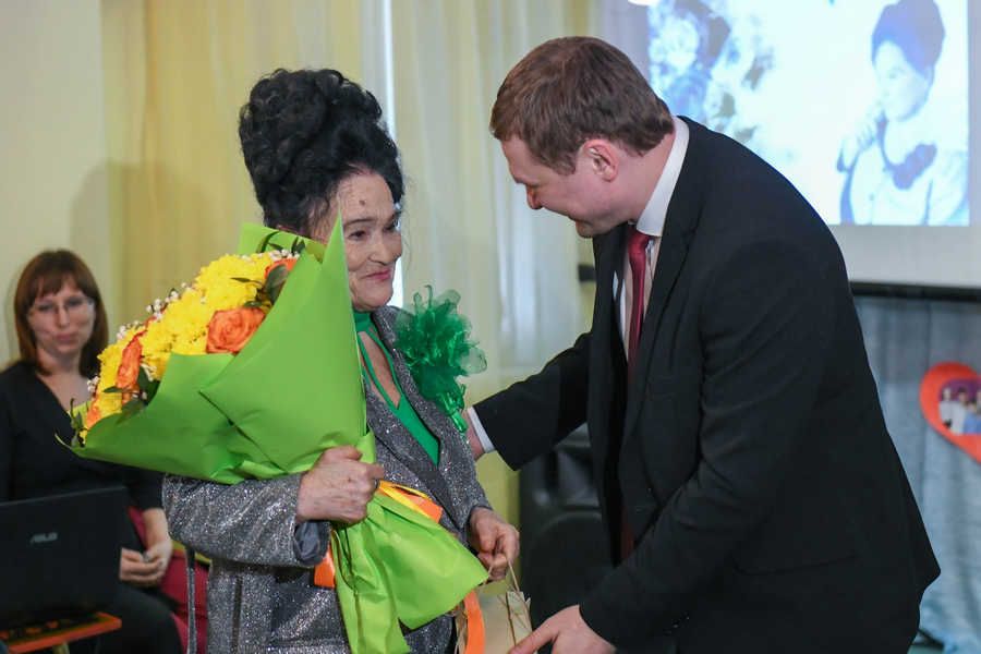 Валентин Коновалов пришел лично поздравить Ларису Васильевну со знаменательной датой: