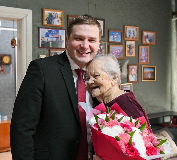 Валентин Коновалов вручил ветерану Великой Отечественной войны Елене Ивановне Сушковой медаль к 80-летию Победы.
