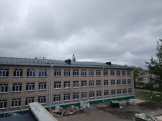В настоящее время строители из Хакасии завершили демонтаж на всех участках кровли. На финишной прямой работы по теплоизоляции крыши, монтаж металлочерепицы, устройство карниза. Также завершаются работы по монтажу новых окон. Специалисты приступили к замене дверей, устройству водосточных систем, ограждению кровли. Сейчас на объекте трудятся 19 человек.