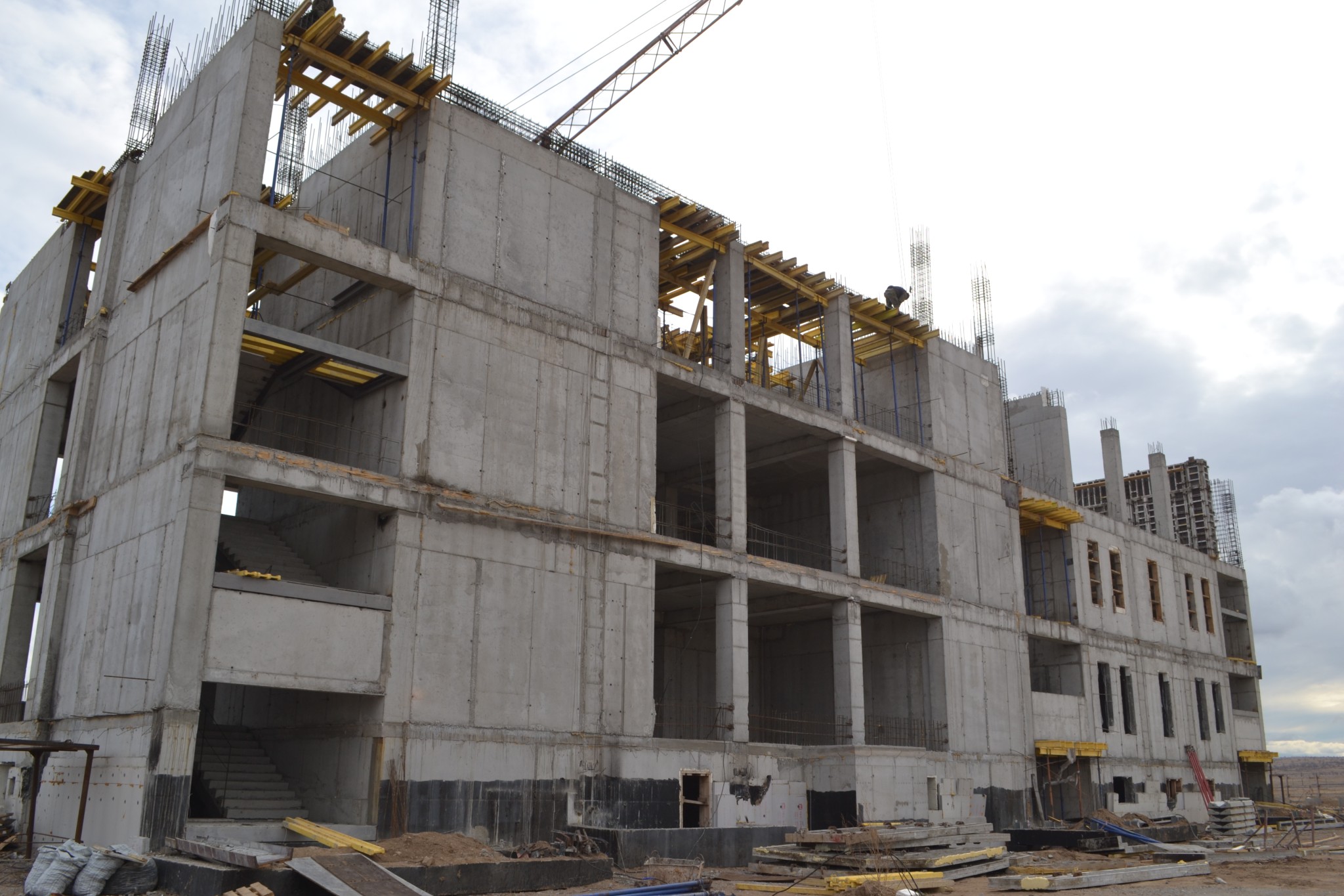 Завершить строительство третьего этажа планируется до конца апреля, включая перекрытия и парапеты.