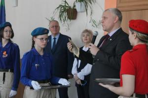 Руководитель школьного историко-краеведческого музея Солнечной школы Сергей Грачёв передал в школьный музей лицея «Поиск» ценные экспонаты, в том числе времен блокадного Ленинграда: хлебную карточку, агитационную листовку,