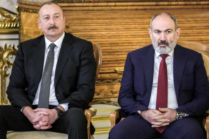 На фото: президент Азербайджана Ильхам Алиев и премьер-министр Армении Никол Пашинян (слева направо) (Фото: