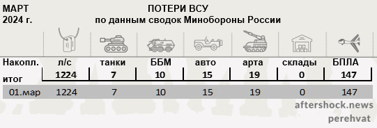 Потери живой силы и техники ВСУ за 1 марта 2024 года