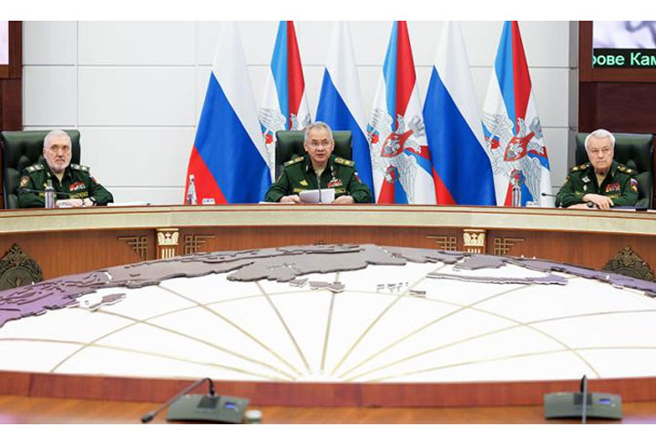 На фото: первый заместитель министра обороны РФ Руслан Цаликов, министр обороны РФ Сергей Шойгу и статс-секретарь — заместитель министра обороны РФ Николай Панков (слева направо) в апреле 2024 (Фото: