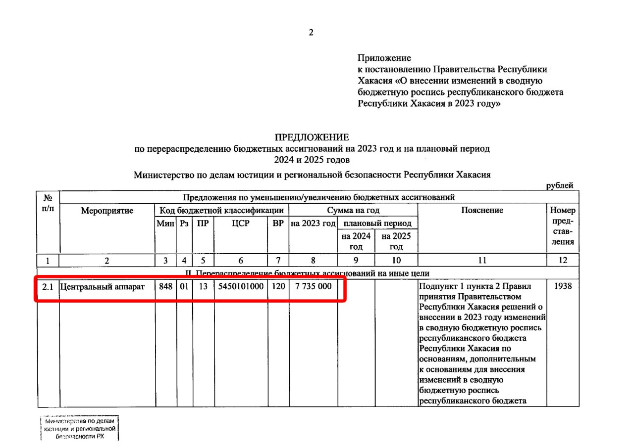 Так, Постановлением правительства №936 от 04.12.2023 на содержание «центрального аппарата» министерства по делам юстиции и региональной безопасности выделены дополнительные почти 8 млн рублей.