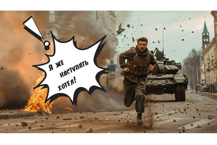 КОЛЛАЖ ЦАРЬГРАДА Президент Украины дал большое интервью американскому телеканалу CBS, в котором заявил, что у "щеневмерлой" нет сил остановить летнее наступление России и, следовательно, ВСУ будут отступать.