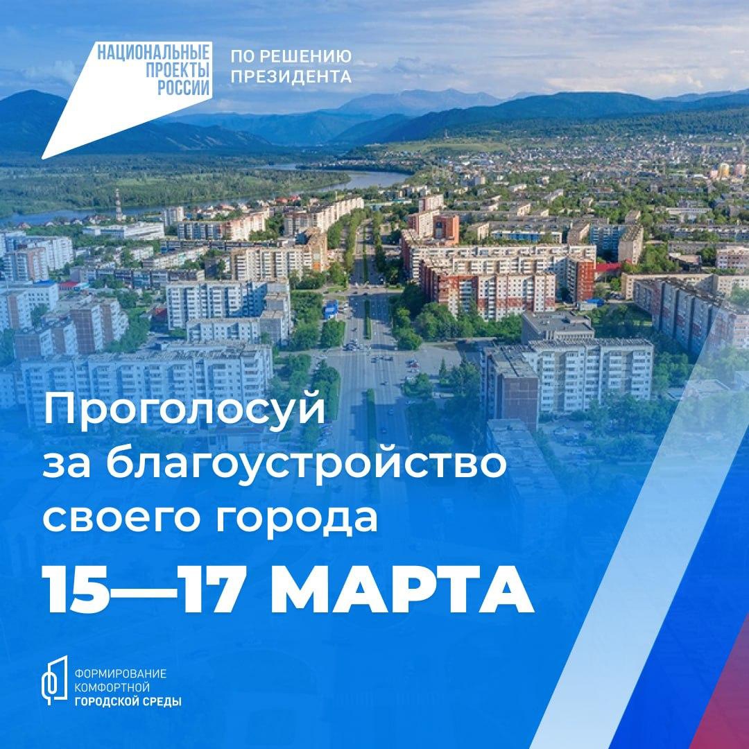 15–17 марта жители Саяногорска cмогут принять участие в голосовании за объекты благоустройства по федеральному проекту «Формирование комфортной городской среды»!