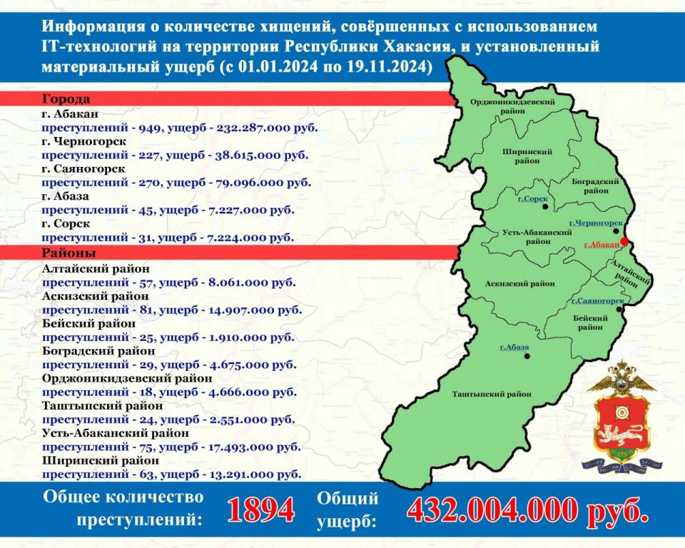 С начала 2024 года на территории Республики Хакасия уже зарегистрировано 1894 преступления, совершенных с использованием информационно-телекоммуникационных технологий. Это значительное увеличение по сравнению с предыдущими годами и вызывает серьезные опасения у местных властей и граждан.