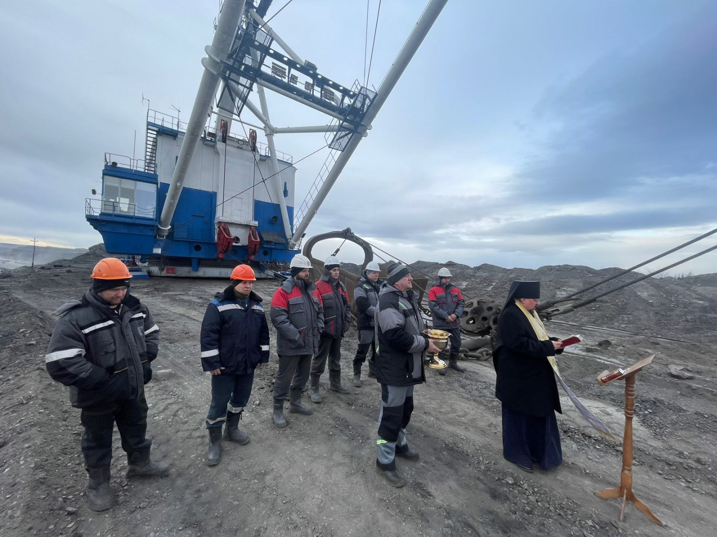 19 ноября 2024 года по просьбе руководства угольной компании “Разрез Степной” и по благословению Правящего архиерея настоятель Богородице-Рождественского храма в городе Черногорске иеромонах Палладий (Винников) совершил освящение шагающего экскаватора, который возобновляет свою работу после капитального ремонта.