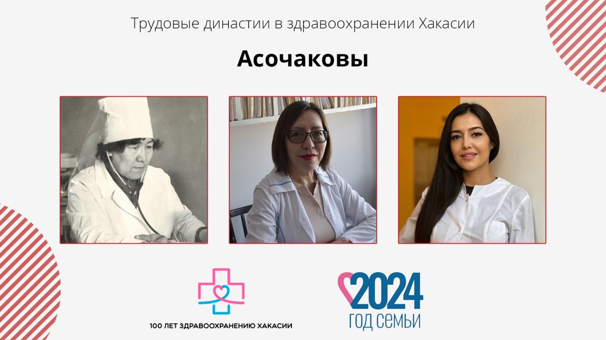 В Таштыпской районной больнице трудится представитель женской врачебной династии – врач-психиатр Ольга Никоноровна Асочакова. Её мама – врач-терапевт Алефтина Игнатьевна Карачакова 52 года отдала служению медицине. Вслед за родными последовала дочь и внучка - Алевтина Сергеевна Макина. Общий профессиональный стаж врачебной династии составляет 88 лет.
